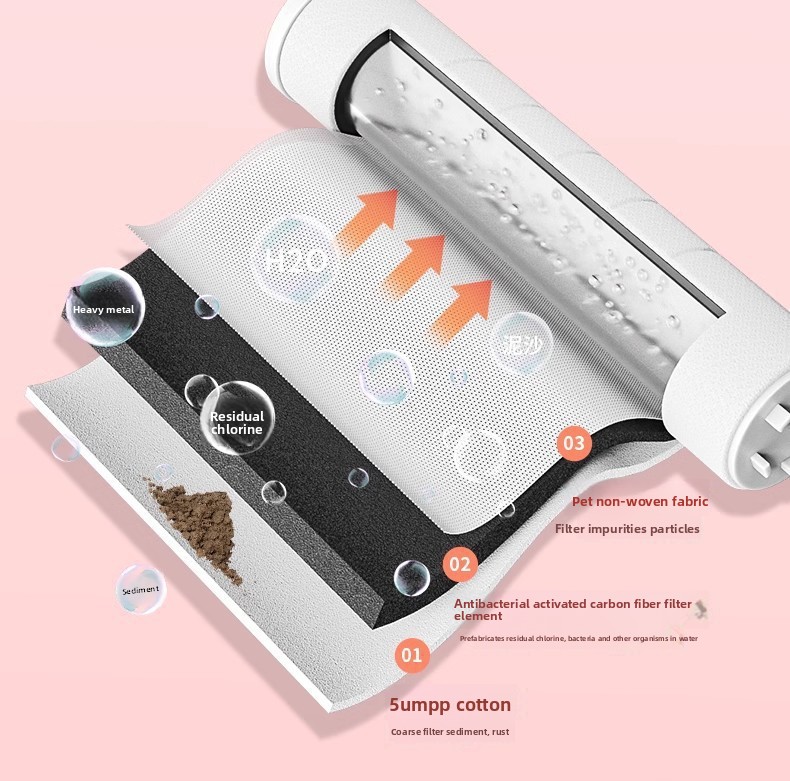 Filtration: Built-in filter core removes chlorine and bacteria for cleaner water.